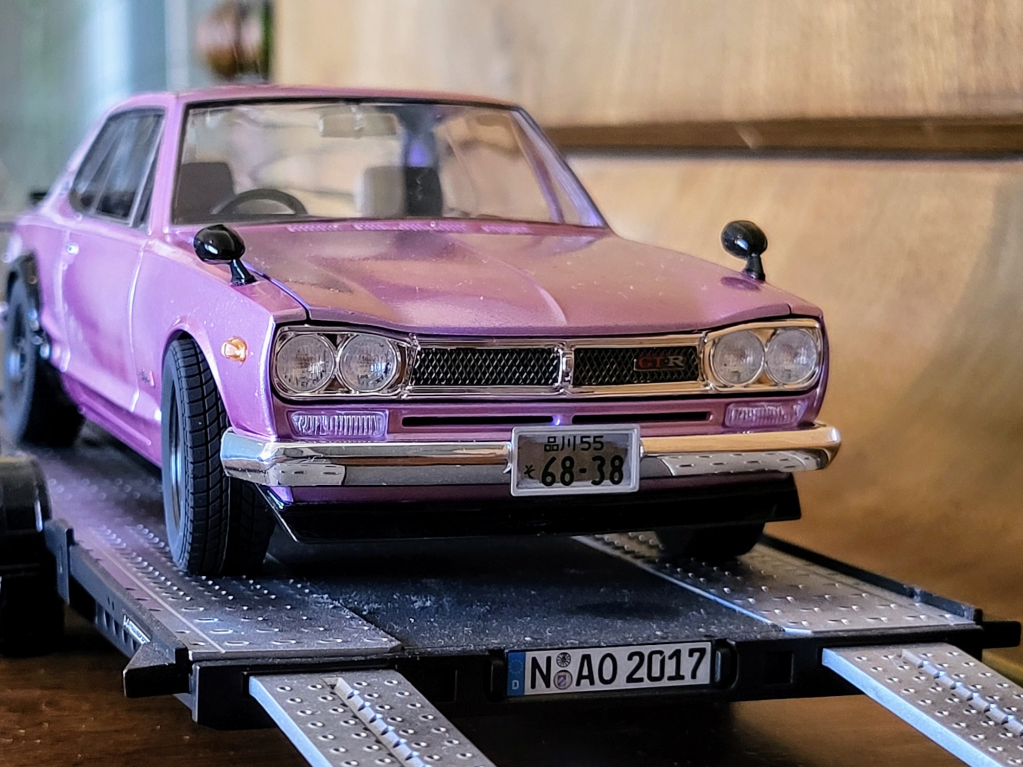 Legendary 1969 Nissan Skyline 2000 GT-R (Hakosuka), finished in a street-custom style. Built from a detailed kit with precision painting, careful assembly, and added finishing touches, this model is perfect for collectors of Japanese classics and motorsport icons.